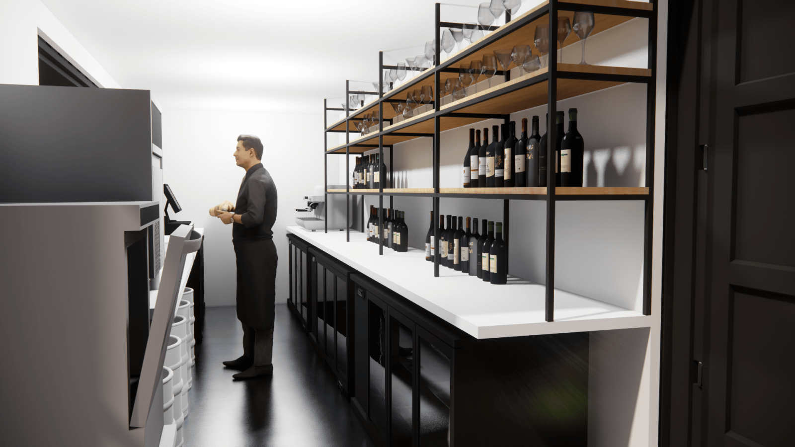 A l'intérieur de notre conteneur bar, chaque espace est maximisé pour offrir un espace de travail spacieux et ergonomique, en répondant aux besoins exigeants des professionnels et conformément aux règles d'hygiène et de sécurité.